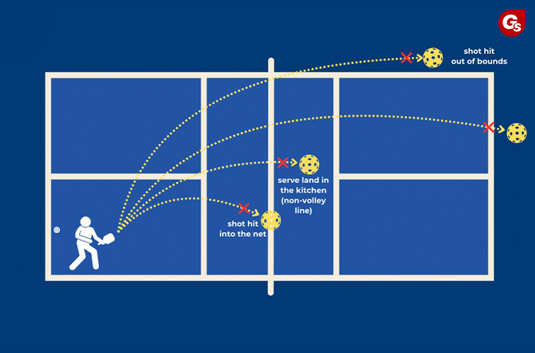 Lỗi bóng không qua lưới hoặc đi ra ngoài: Đây là lỗi cơ bản nhất thường gặp trong Pickleball với người mới. Khi mắc lỗi này, đối thủ được cộng điểm và bạn mất quyền giao bóng.