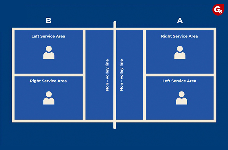 Vị trí của người chơi: Người chơi ở ô giao bóng bên phải sẽ luôn là người giao bóng đầu tiên cho một đội.