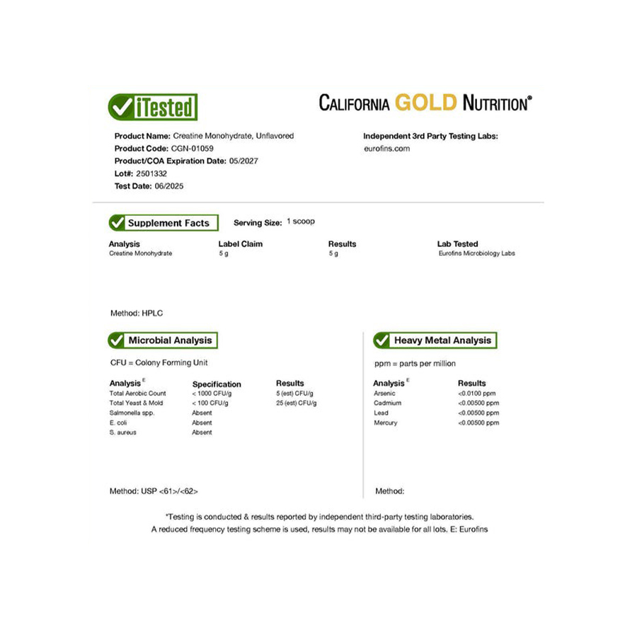 Khi bạn tìm kiếm một loại Creatine, bạn mong đợi điều gì? Hiệu quả, an toàn, hay một sản phẩm hoàn toàn không phụ gia? California Gold Creatine mang đến tất cả những điều đó, cùng một lời cam kết về sự minh bạch mà ít sản phẩm nào có được: Chất lượng được kiểm chứng độc lập cho từng lô hàng.