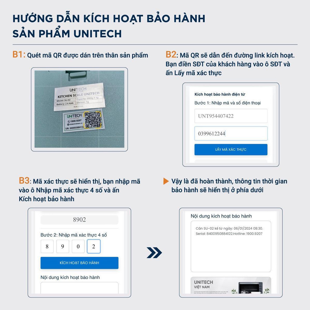 Cách kích hoạt bảo hành cân tiểu ly Unitech SU-3011: