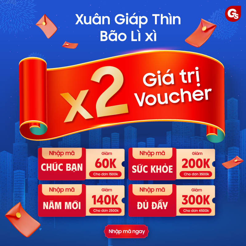 Khai lộc đầu năm, Gymstore tặng toàn bộ khách hàng mua Online qua Website trong các ngày 13, 14, 15/2 x2 giá trị voucher so với ngày thường, tổng mức chiết khấu lên đến 300K: