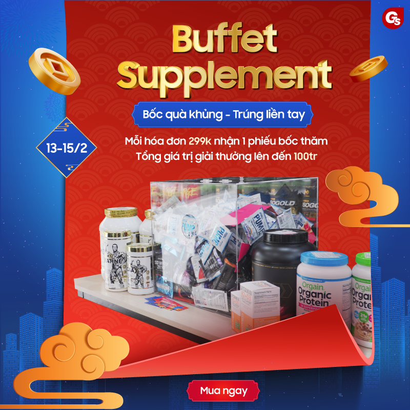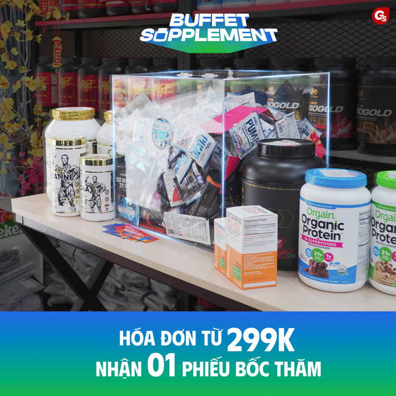 Chương trình BUFFET SUPPLEMENT đầu tiên tại Việt Nam với cơ hội nhận được giải thưởng là 1 NĂM UỐNG WHEY MIỄN PHÍ.
