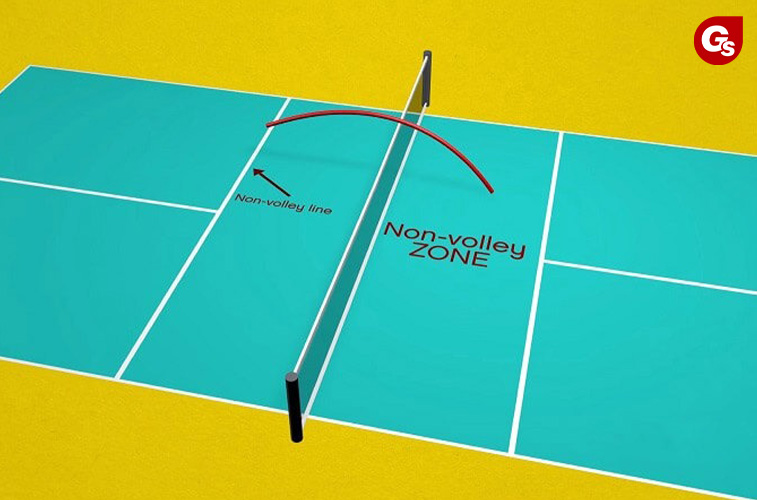 Chú thích: No Volley Zone, còn được gọi là "KITCHEN", là khu vực có kích thước 2,13m ở mỗi bên lưới và từ đường biên này sang đường biên kia.