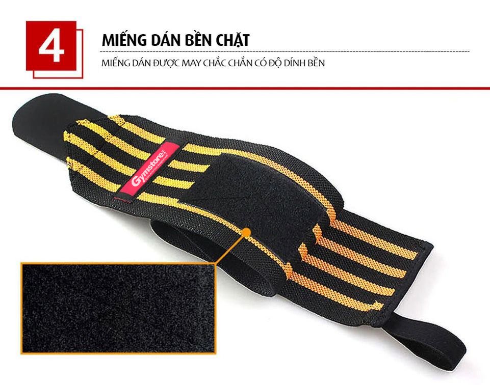 Băng cuốn bảo hộ cổ tay Gymstore với cả tiến chất vải có độ mềm hơn, băng đai dài hơn và thiết kế kiểu bốn sọc nam tính, khỏe khoắn (phiên bản cũ chỉ thiết kế vân 2 sọc)