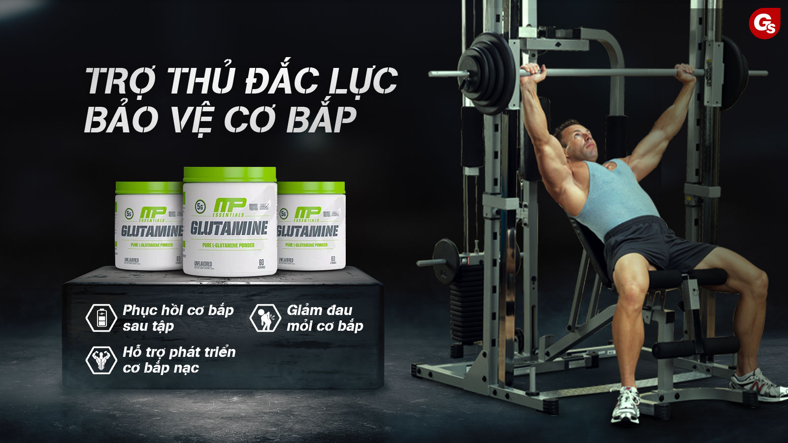 Glutamine cần thiết để duy trì protein cơ bắp. Các nghiên cứu cho thấy khi bổ sung glutamine, các vận động viên ít bị đau cơ và mất sức hơn. Nó cũng có thể làm giảm tổn thương cơ và hiệu suất tập luyện.