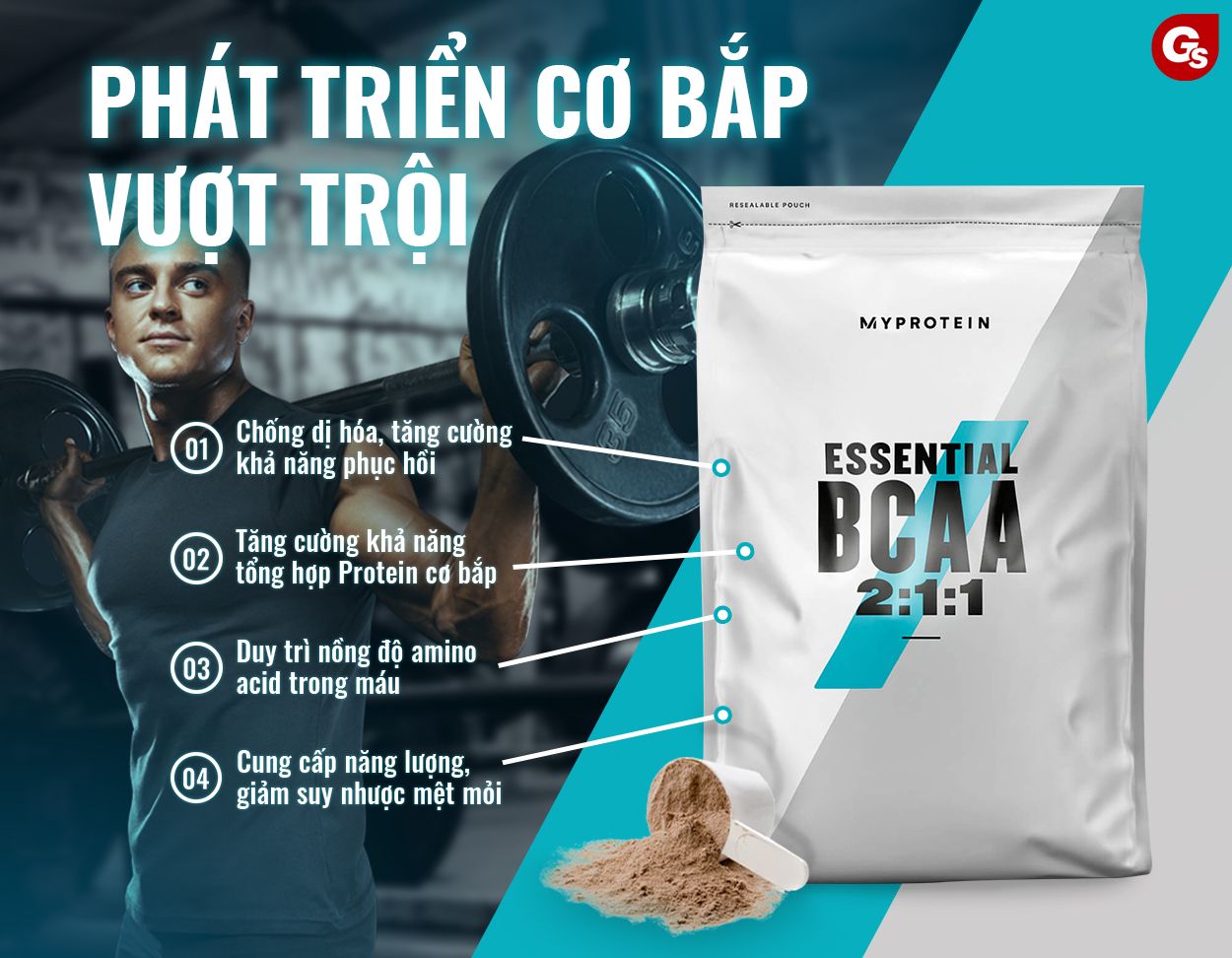 Theo nghiên cứu, có 20 loại amino acid cơ bắp cần để phát triển trong đó BCAAs chiếm 1/3 lượng amino acid nói trên trong 1 mô cơ. Vì vậy muốn cơ bắp phát triển thì BCAAs là rất cần thiết.