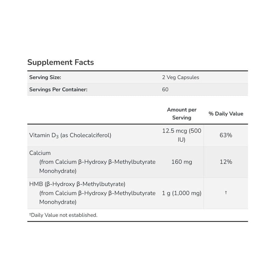 HMB (ß-Hydroxy ß-Methylbutyrate) là một chất chuyển hóa tự nhiên từ axit amin leucine, có vai trò quan trọng trong việc điều chỉnh sự phân hủy protein trong cơ thể, giúp bảo toàn mô cơ nạc.