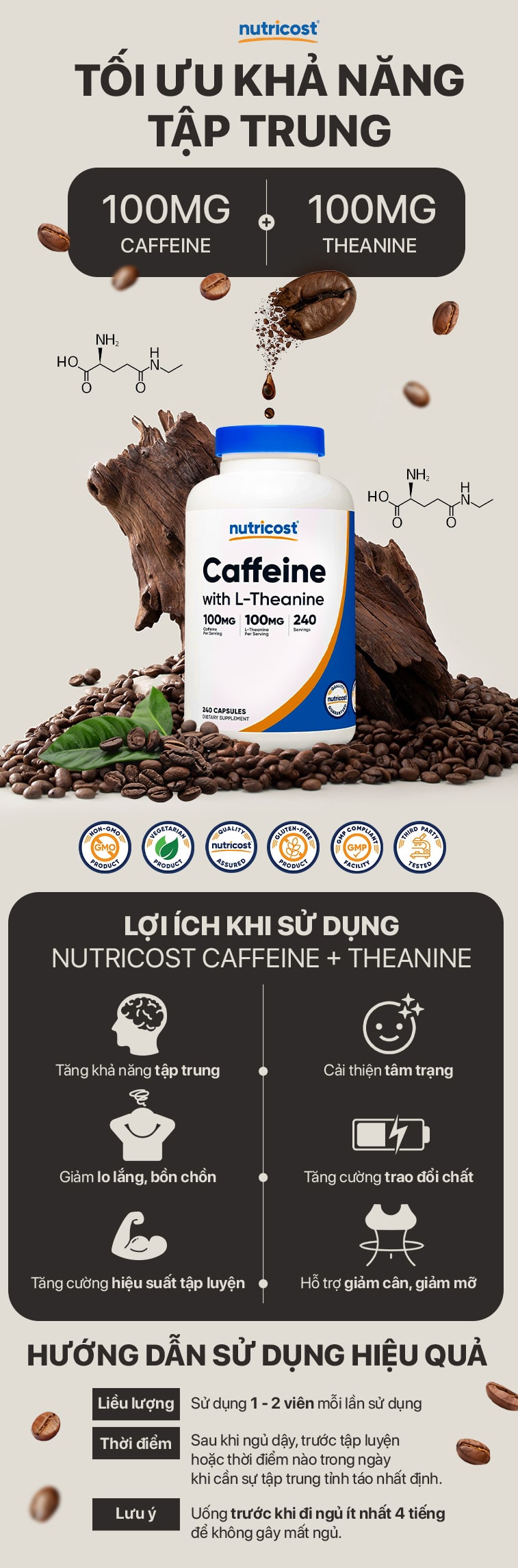 HƯỚNG DẪN SỬ DỤNG NUTRICOST CAFFEINE + THEANINE HIỆU QUẢ