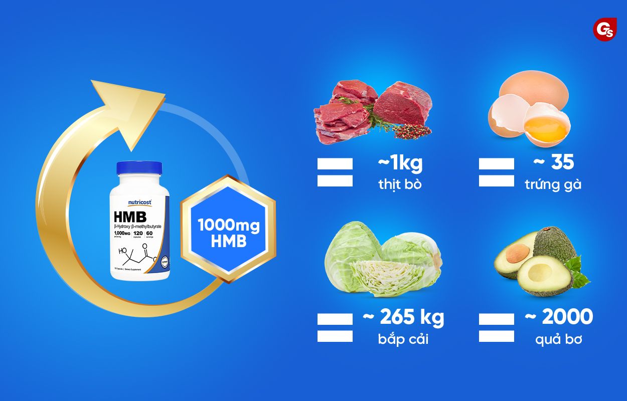 HMB có trong nhiều loại thực phẩm chúng ta ăn hàng ngày, tuy nhiên hàm lượng là rất ít. Để có được 1000mg HMB, bạn phải ăn khoảng 35 quả trứng gà hoặc 1kg thịt bò. Do đó, sử dụng các thực phẩm bổ sung như Nutricost HMB sẽ là giải pháp tối ưu để cung cấp đầy đủ HMB cho cơ thể.