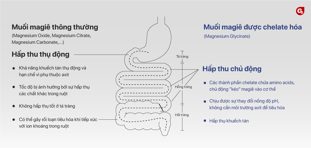 Tuy nhiên, Magnesium Glycinate có thể chịu được sự thay đổi nồng độ pH trong suốt quá trình tiêu hóa, đồng thời sẽ ở lại cho đến khi đạt đến vị trí hấp thụ trong ruột và cuối cùng sẽ được sử dụng cho mục đích bổ sung magiê cho cơ thể.