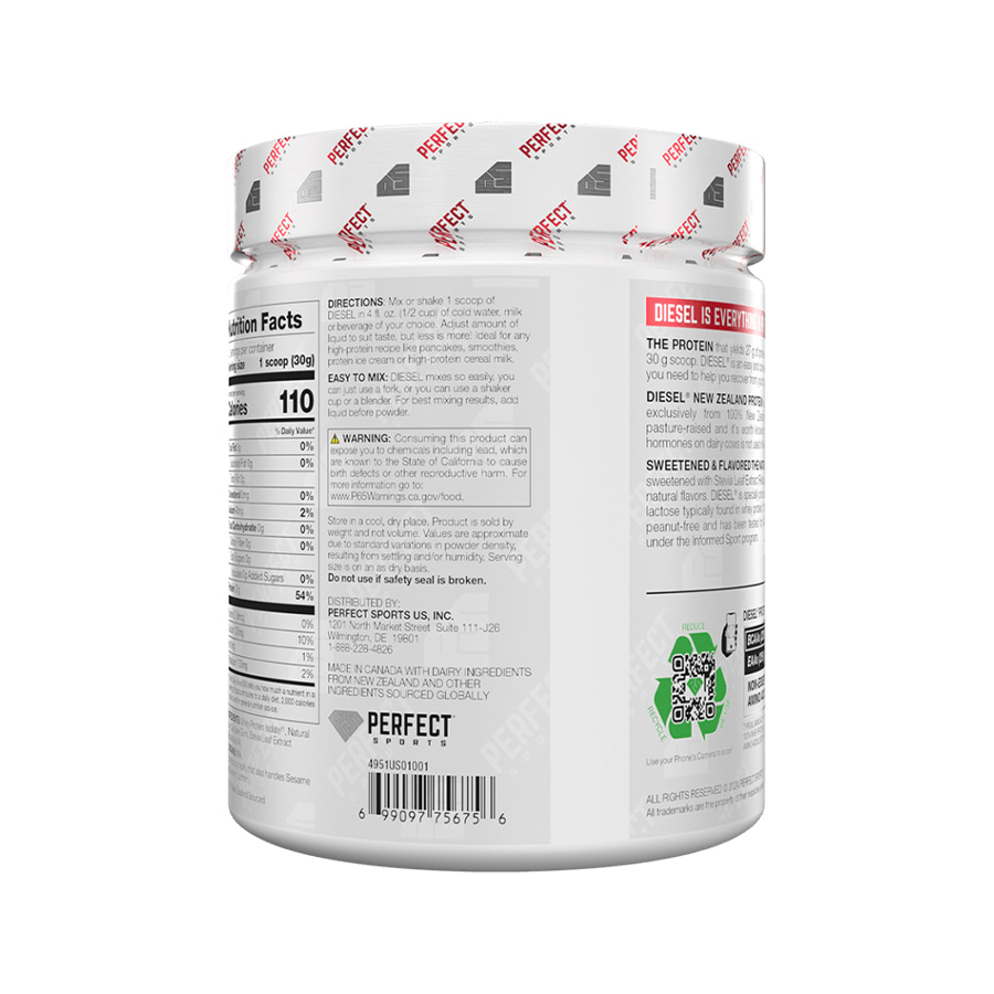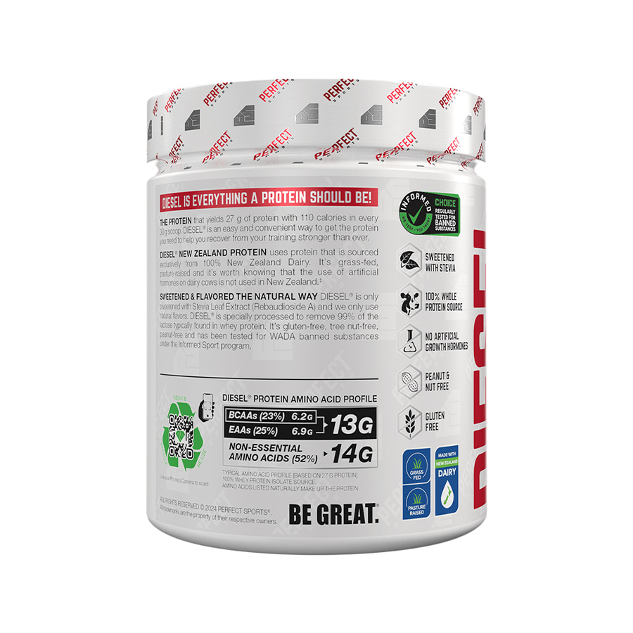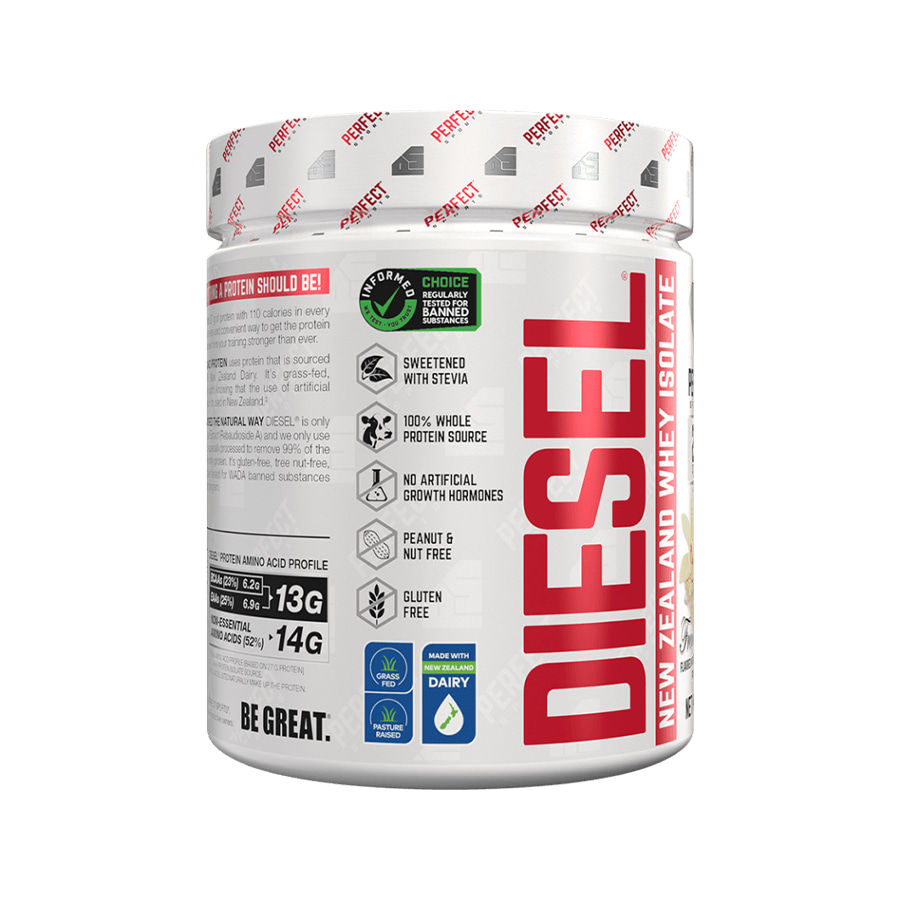 Diesel Whey 360g được sản xuất bởi Perfect Sport - thương hiệu thực phẩm bổ sung nổi tiếng đến từ Canada được thành lập từ năm 2003, chuyên cung cấp các sản phẩm dành cho vận động viên, người tập gym, chơi thể thao. Whey Protein Diesel chính là sản phẩm đã làm nên tên tuổi cho hãng.