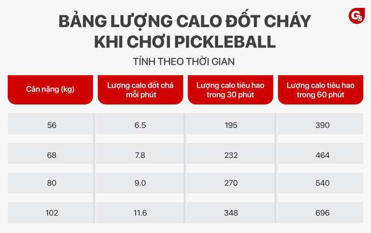 Cụ thể, nó phụ thuộc vào độ tuổi, giới tính, cân nặng, tốc độ, cường độ bạn chơi. Theo Racquet Sports Center, trung bình khi chơi Pickleball, từ cường độ thấp đến cao, một người nặng 70kg có thể đốt cháy 500 calo đến 700 calo mỗi giờ. Tương tự, một người nặng 90kg có thể đốt cháy 700 calo đến 900 calo mỗi giờ.