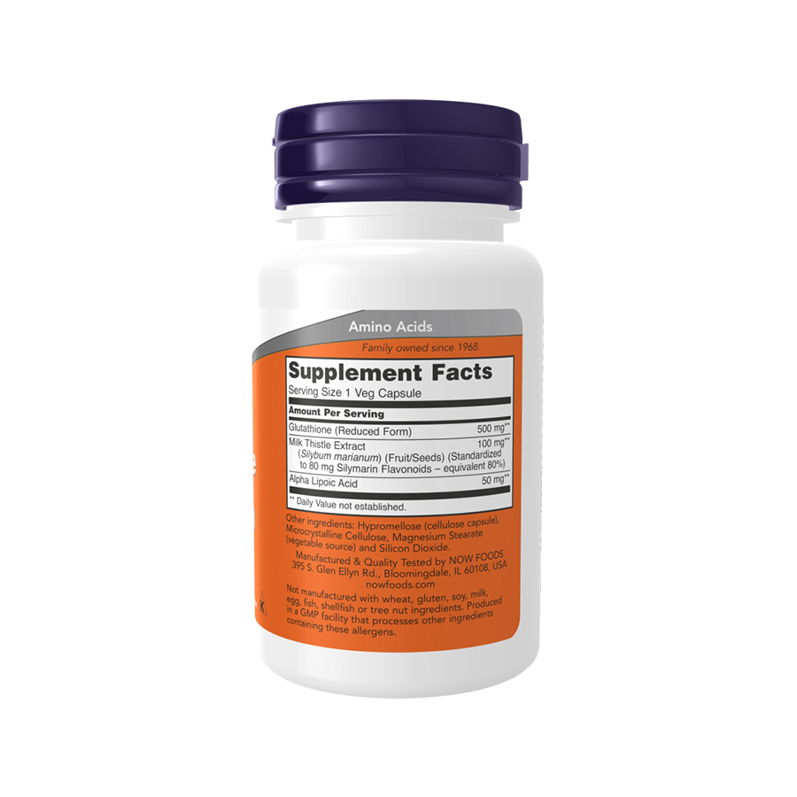 500mg Glutathione, 100mg Milk Thistle, 50mg Alpha-lipoic acid |