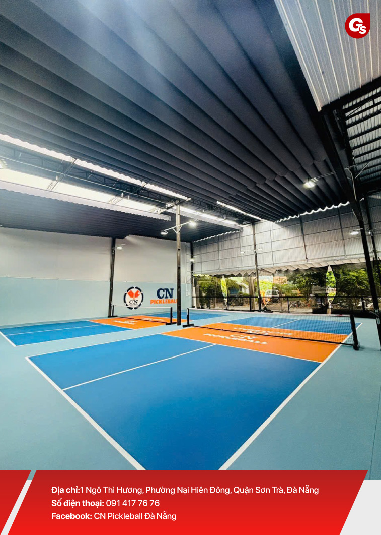 Sân CN Pickleball Đà Nẵng có 03 sân có mái che di động, thiết kế hiện đại, mặt sân đạt chuẩn, cùng với các dịch vụ đi kèm như quầy cà phê, cho thuê vợt, lớp học cơ bản sẽ mang đến cho bạn những giờ phút thư giãn và vận động thật sự thoải mái.