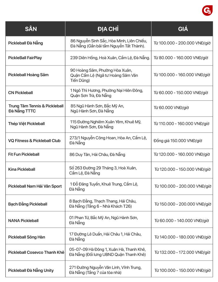 Để bạn có thể dễ dàng tìm kiếm sân Pickleball Đà Nẵng phù hợp và có những trải nghiệm tuyệt vời tại Đà Nẵng, Gymstore xin tổng hợp một số sân pickleball đang được yêu thích hiện nay, kèm theo một số thông tin hữu ích.