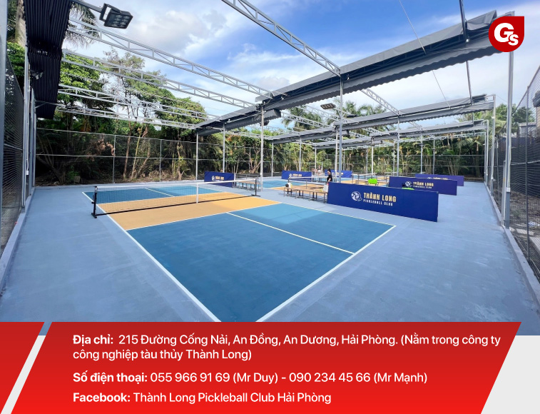 Sân Pickleball Thành Long Hải Phòng có 04 sân có mái che di động, mặt sân đẹp, chất lượng cao, thường được các bên như cơ quan, doanh nghiệp tổ chức các giải thi đấu Pickleball giao lưu trên địa bàn Hải Phòng.