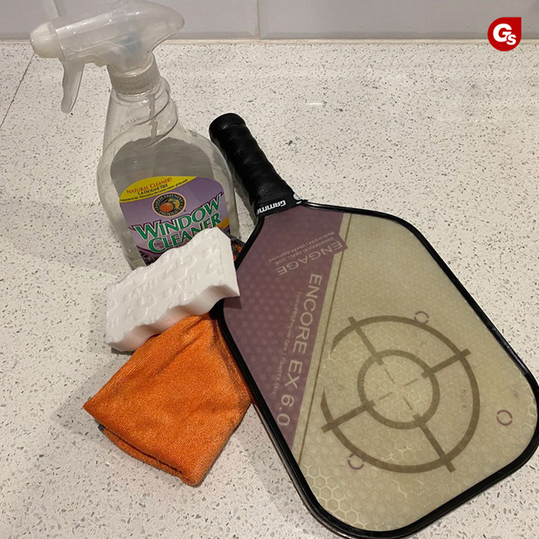 Cách tẩy mặt vợt Pickleball bằng nước lau kính các bạn thực hiện như sau: