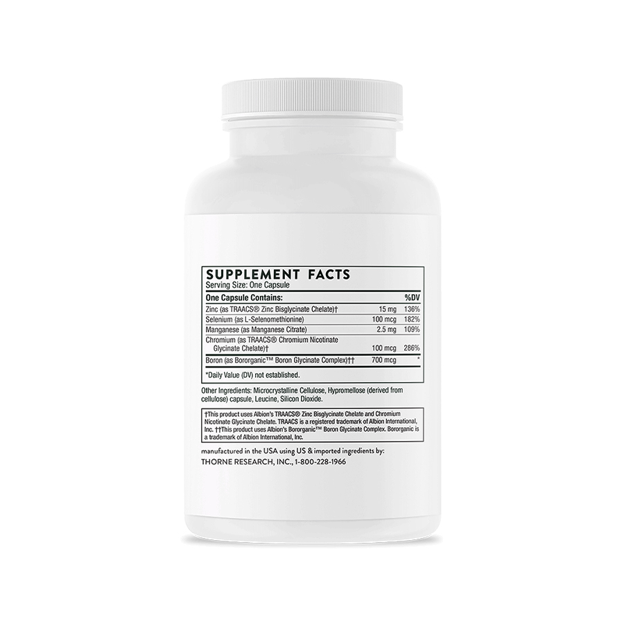 Thorne Trace Minerals là công thức khoáng chất vi lượng toàn diện được thiết kế để bù đắp những thiếu hụt phổ biến trong chế độ ăn hiện đại.